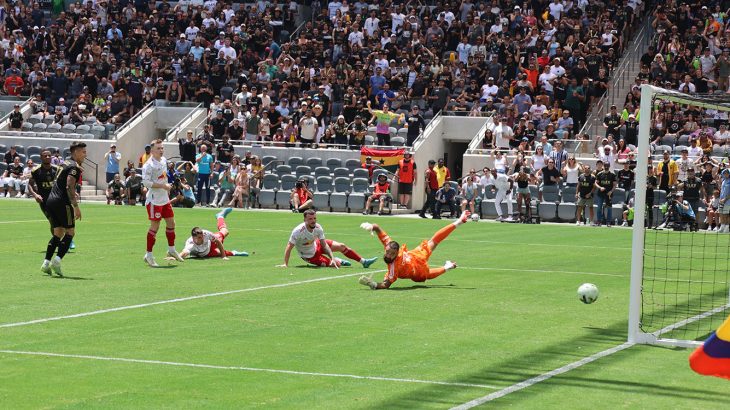 Así comenzó a hilvanarse el triunfo de LAFC sobre New York Red Bull, el partido realizado ante una buena entrada en el Banc of California, que esta soleada media tarde del domingo 26 de junio tuvo entre su invitados especial al laureado jugador frances Kyllian MBappe, quien se pudo ver la calidad del mexicano Carlos Vela, quien jugó muy bien los 90' minutos, y ahora si por primera vez acercandose a la tribuna y celebrando con ellos este triunfo.