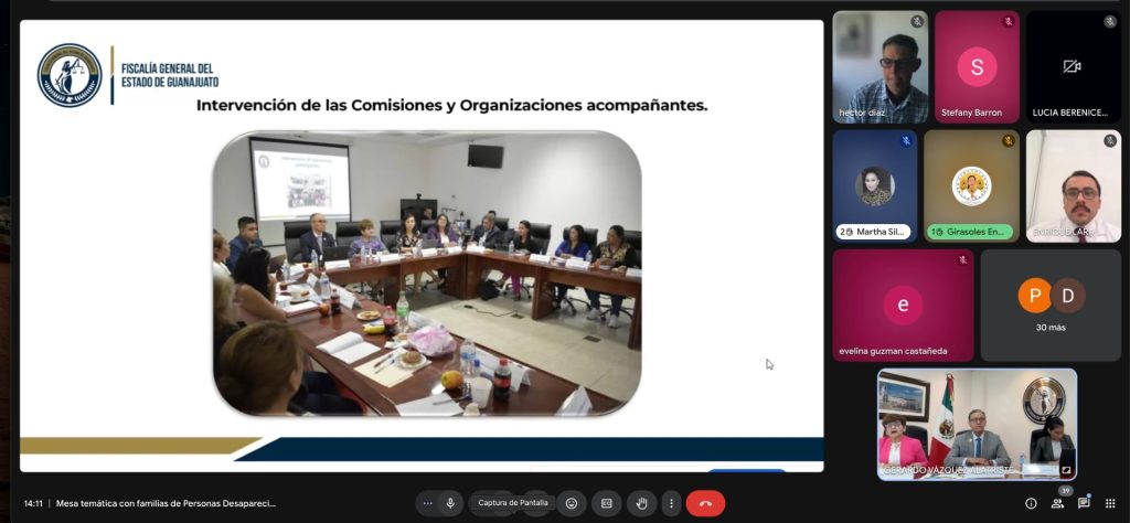 Alicia Arias/León, Gto.- Personal de la Fiscalía General del Estado de Guanajuato (FGEG) y familias de personas desaparecidas se reunieron en formato virtual para dar seguimiento a las recomendaciones del Comité contra la Desaparición Forzada de la Organización de las Naciones Unidas (ONU). Hay más de 5 mil personas desaparecidas en el estado.